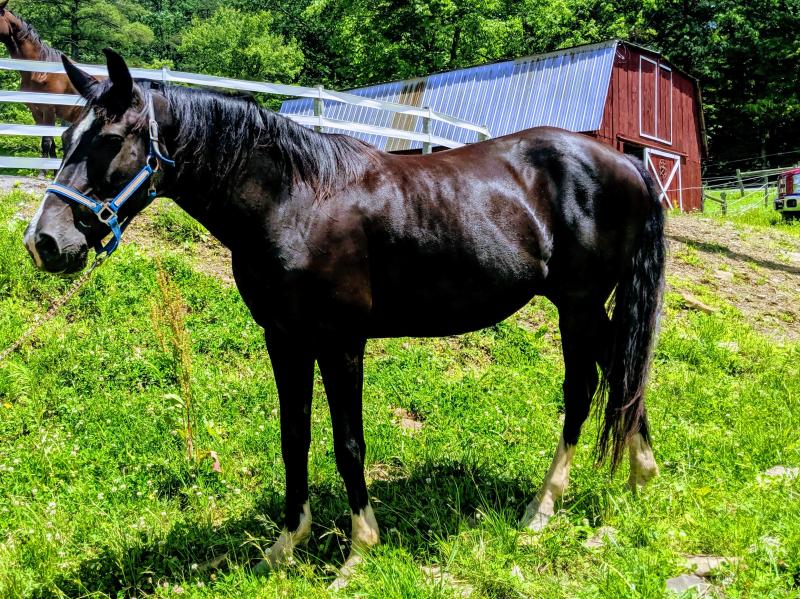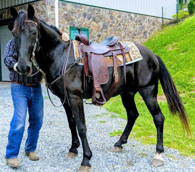 Classy, good gait and very athletic with plenty of motor. Beautiful black with white chrome that will make a cowboy look good. Austin is very high strung and requires a skilled and attentive rider.