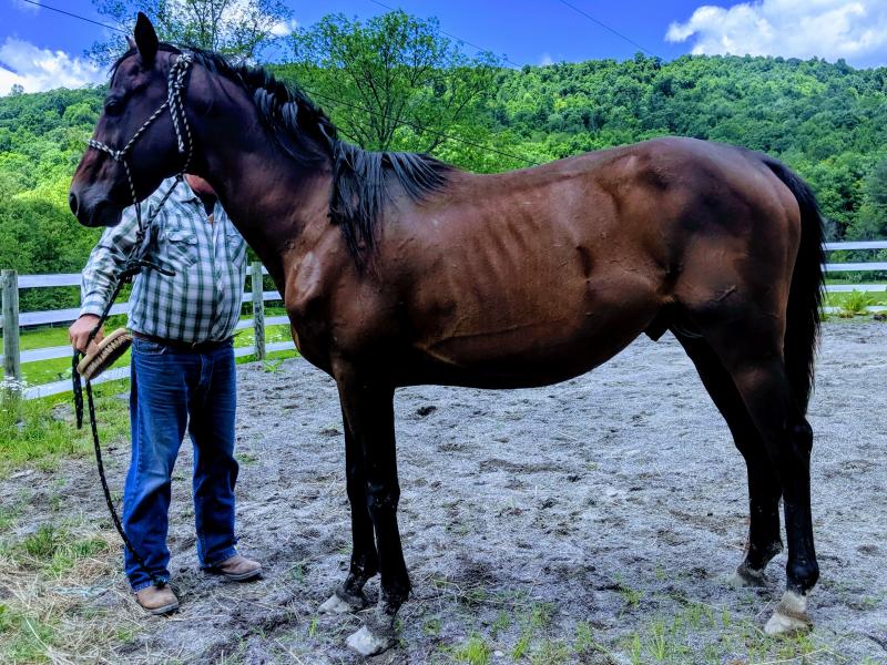 Tucker is a very gentle and pretty bay gelding with a great disposition that does not know he is a stallion. He was a family pet and needs riding. He saddles easily, stands for a rider but then gets confused. Needs some love and patience from a skilled rider and then could become a great family horse.